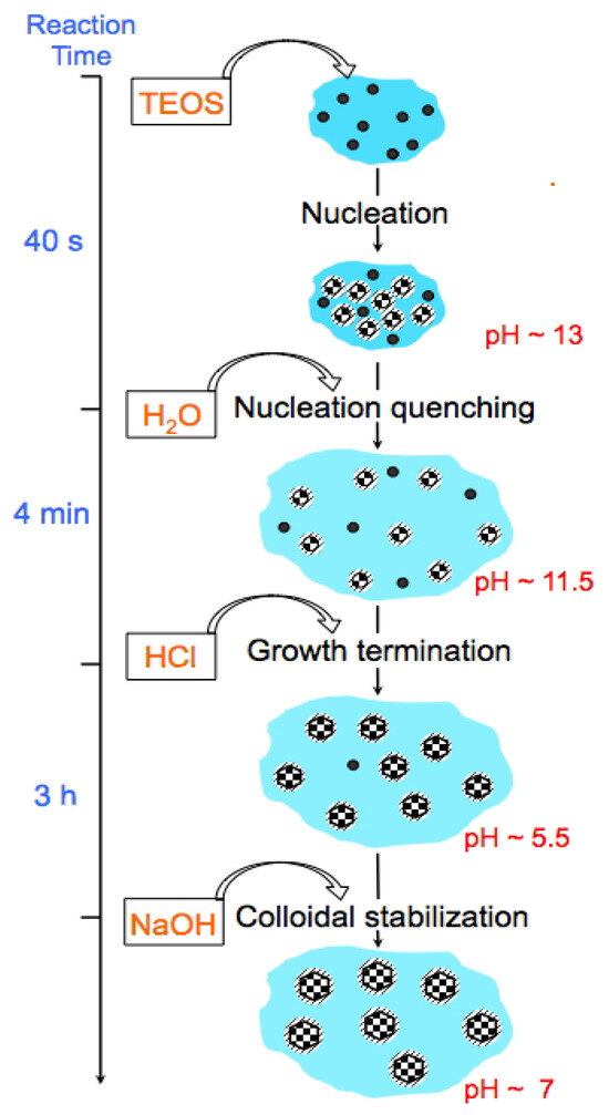 - Qiao, Z.A.; Zhang, L.; Guo, M.Y.; Liu, Y.L.; Huo, Q.S. Synthesis of Mesoporous Silica Nanoparticles via Controlled Hydrolysis and Condensation of Silicon Alkoxide. Chem. Mater. 2009, 21, 3823–3829. [Google Scholar] [CrossRef]