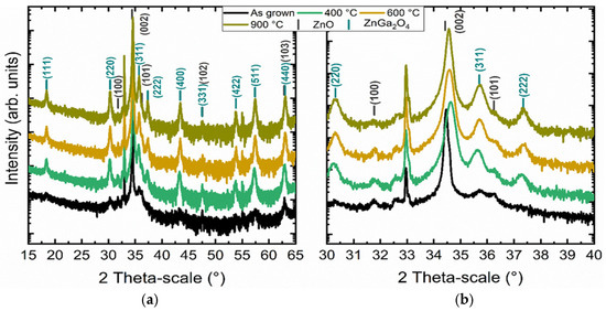 - Chen, P.; Huang, S.; Yuan, S.; Chen, Y.; Hsiao, P.; Wuu, D. Quasi-Single-Crystalline ZnGa2O4 Films via Solid Phase Epitaxy for Enhancing Deep-Ultraviolet Photoresponse. Adv. Mater. Interfaces 2019, 6, 1901075. [Google Scholar] [CrossRef]