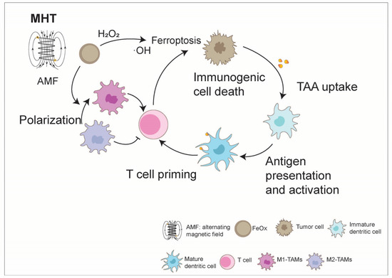 - Pan, J.; Xu, Y.; Wu, Q.; Hu, P.; Shi, J. Mild Magnetic Hyperthermia-Activated Innate Immunity for Liver Cancer Therapy. J. Am. Chem. Soc. 2021, 143, 8116–8128. [Google Scholar] [CrossRef] [PubMed]