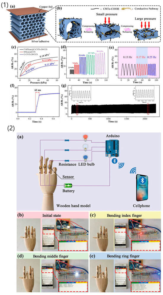 - Yang, Z.; Li, H.; Zhang, S.; Lai, X.; Zeng, X. Superhydrophobic MXene@carboxylated Carbon Nanotubes/Carboxymethyl Chitosan Aerogel for Piezoresistive Pressure Sensor. Chem. Eng. J. 2021, 425, 130462. [Google Scholar] [CrossRef]