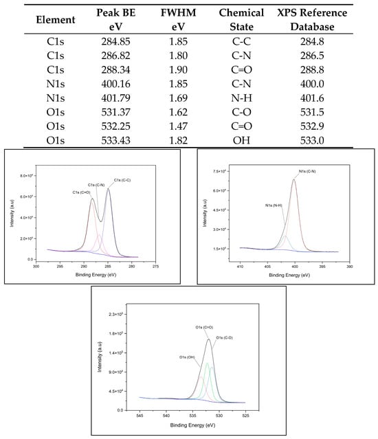 NCD QD high-resolution XPS spectra with corresponding peak table.