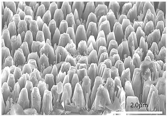 The original image, captured by a scanning electron microscope, was divided into six smaller images of equal dimensions. These images were then integrated to create a dataset of diamond nanostructures, designated as the NanoData dataset. The original image captured by the scanning electron microscope is depicted in Figure 7. A portion of the diamond nanostructures is present in the NanoData dataset. as illustrated in Figure 8.