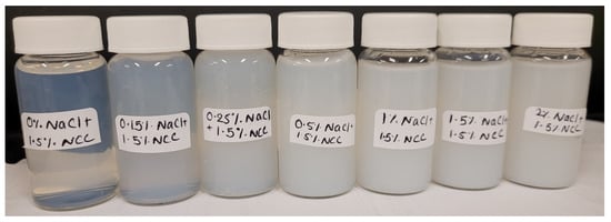 | NCC Concentration of Matrix Phase (wt%) | Solids Concentration of Suspension (wt%) | Solids Concentration of Suspension (vol%) |