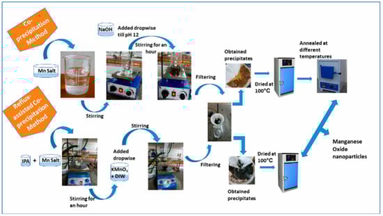 Figure 6. Schematic representation of MnO2 nanoparticle synthesis process [95].