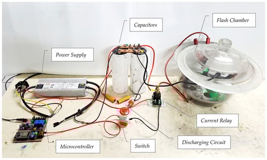 The control and monitoring system consists of an ESP32 DEVKIT V1 microcontroller and a digital multimeter, which monitors capacitor voltage in real time, enabling precise control of the FJH process. Precision resistors (1% tolerance) are incorporated into the bleed resistor set to ensure accurate voltage settings during capacitor charging and discharging. Terminal blocks facilitate secure connections among the microcontroller, relay system, and other electrical components.