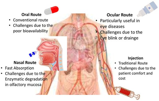 The various types of carriers demonstrate different degrees of effectiveness in drug delivery as mentioned in Figure 3. However, for both natural and biomedical applications, carriers must exhibit essential characteristics: (1) the manufacturing process should be straightforward and cost-effective; (2) the materials used for the carrier’s synthesis, including solvents and precursors, must be non-toxic and affordably priced; and (3) carriers must be biocompatible, renewable, and biodegradable, aligning with safety and environmental standards.