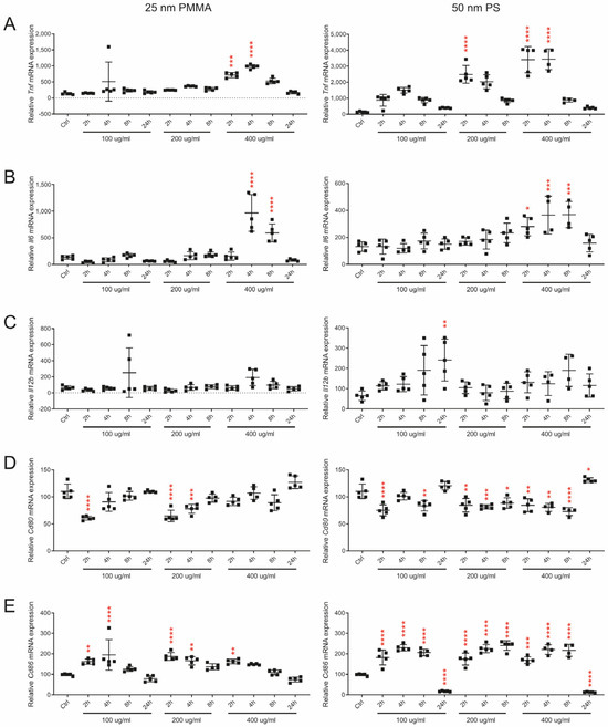 3.2. NPs Promote Activation and Proinflammatory Response of BMDMs