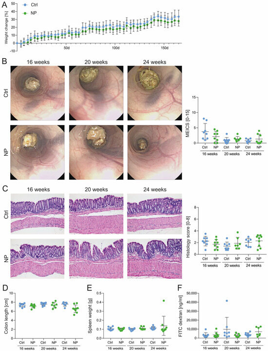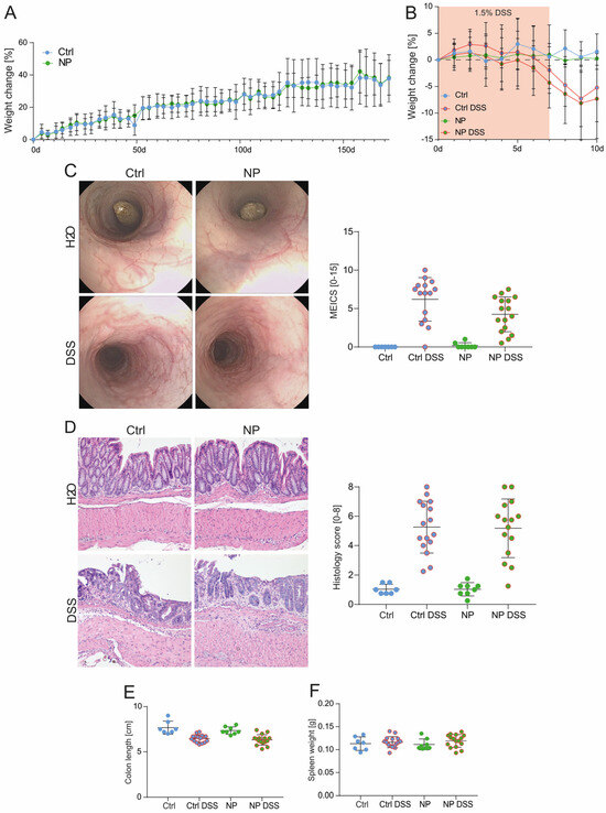 3.4. Long-Term NP Administration Does Not Aggravate DSS-Induced Colitis