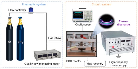 Schematic diagram illustrating DBD plasma experimental setup with SF6/Ar gas.
