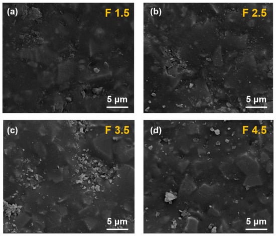SEM image of surface morphology of (a) F1.5, (b) F2.5, (c) F3.5, and (d) F4.5.