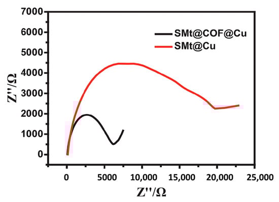Electrochemical impedance spectroscopy of SMt@COF@Cu and SMt@Cu [112].
