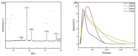 Using a particle size meter, the diameter distribution of Cu2O microspheres was measured. As shown in Figure 4B, the results showed that the particle size distribution was concentrated at 165 nm–275 nm and the microspheres were well prepared.