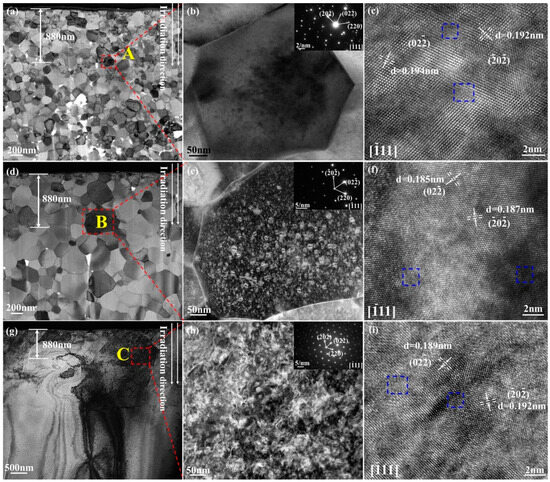 3.2. Microstructure of the Irradiated Samples