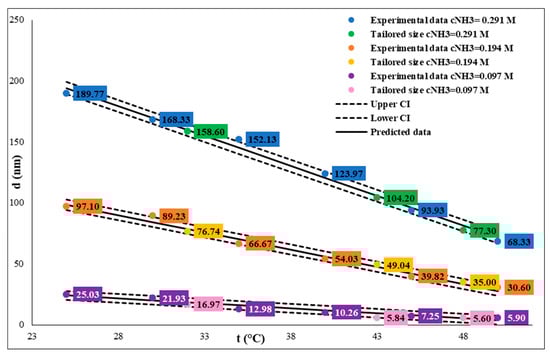 | Sample | cNH3 (mol/dm3) | cH2O (mol/dm3) | t (°C) | dDLS (nm) | PDIDLS | dTEM (nm) | PDITEM |