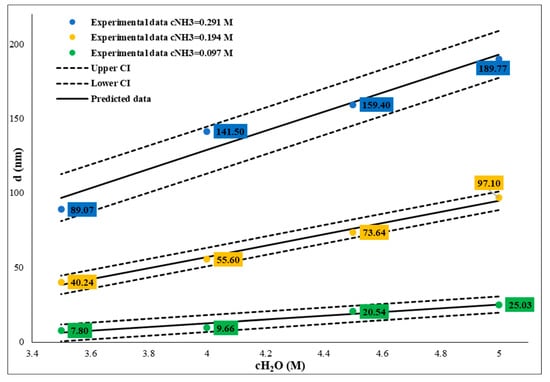 | Sample | cNH3 (mol/dm3) | cH2O (mol/dm3) | t (°C) | dcal (nm) | dDLS (nm) | PDIDLS |