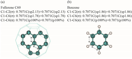(a) Natural bond orbital coefficients and hybrids of fullerene C60; (b) natural bond orbital coefficients and hybrids of benzene.