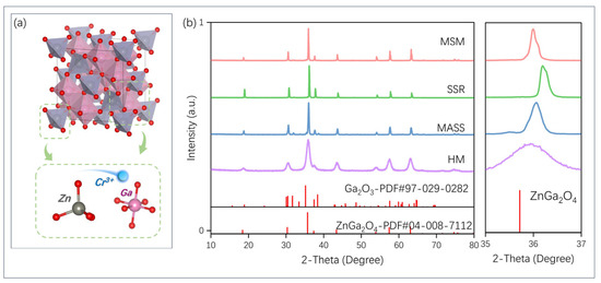 3+ NIR PersL material is selected as the research object. Different synthesis methods may affect material properties under varying conditions. Four representative methods were employed. In addition to the common SSR and HM preparation methods in ZGO, MSM, which has the advantages of the solid–liquid phase method, and the emerging MASS method, have been introduced. The detailed synthesis process for obtaining ZGO: Cr