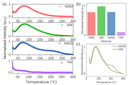 Figure 6a demonstrates that the TL glow curves of samples synthesized via MSM, SSR, MASS, and HM exhibit similarities in the shallow trap region. The trap depth was calculated using the following formula [