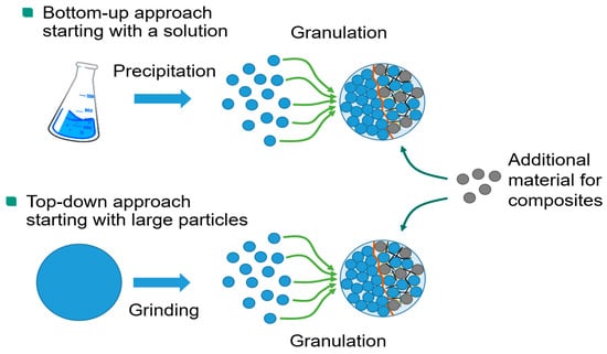 - Muller, M.; Schneider, L.; Bohn, N.; Binder, J.R.; Bauer, W. Effect of Nanostructured and Open-Porous Particle Morphology on Electrode Processing and Electrochemical Performance of Li-Ion Batteries. ACS Appl. Energy Mater. 2021, 4, 1993–2003. [Google Scholar] [CrossRef]