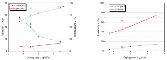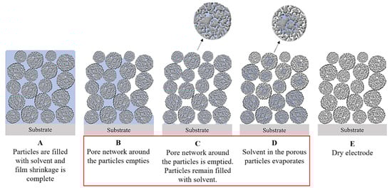 - Klemens, J.; Schneider, L.; Herbst, E.C.; Bohn, N.; Müller, M.; Bauer, W.; Scharfer, P.; Schabel, W. Drying of NCM Cathode Electrodes with Porous, Nanostructured Particles Versus Compact Solid Particles: Comparative Study of Binder Migration as a Function of Drying Conditions. Energy Technol. 2022, 10, 2100985. [Google Scholar] [CrossRef]