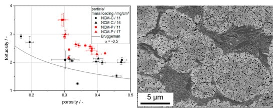 - Schneider, L.; Klemens, J.; Herbst, E.C.; Müller, M.; Scharfer, P.; Schabel, W.; Bauer, W.; Ehrenberg, H. Transport Properties in Electrodes for Lithium-Ion Batteries: Comparison of Compact versus Porous NCM Particles. J. Electrochem. Soc. 2022, 169, 100553. [Google Scholar] [CrossRef]