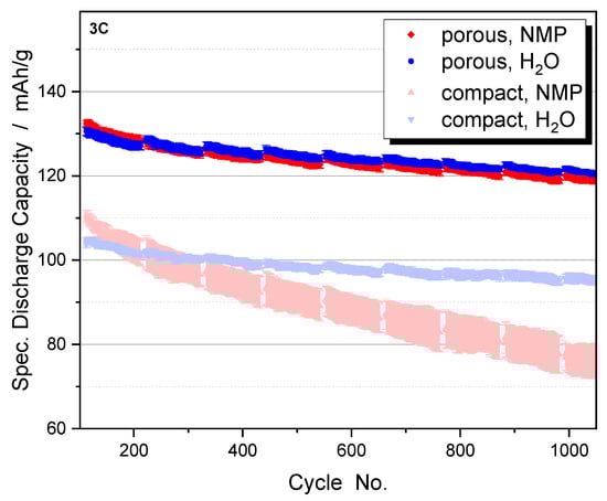 - Dreizler, A.M.; Bohn, N.; Geßwein, H.; Müller, M.; Binder, J.R.; Wagner, N.; Friedrich, K.A. Investigation of the Influence of Nanostructured LiNi0.33Co0.33Mn0.33O2 Lithium-Ion Battery Electrodes on Performance and Aging. J. Electrochem. Soc. 2018, 165, A273–A282. [Google Scholar] [CrossRef]