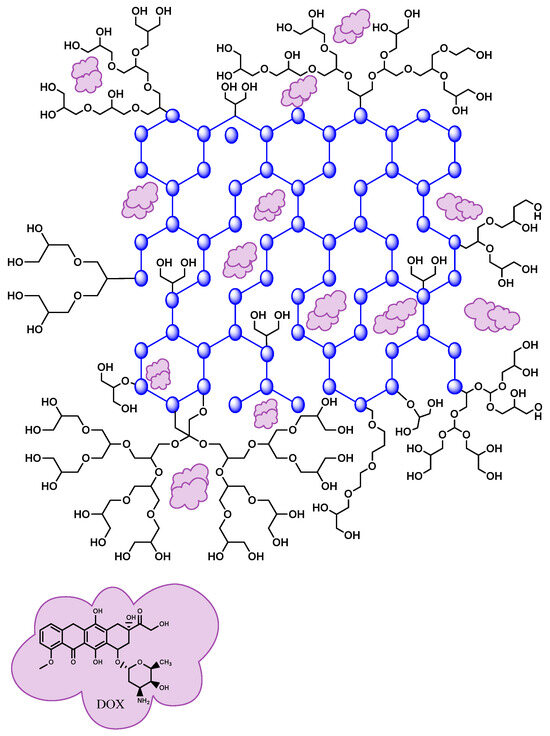 - Targhazeh, N.; Maleki, M.; Alemi, F.; Yousefi, B. Enhanced Drug Loading Capacity of Graphene Oxide Nanoparticles by Polyglycerol Hyper Branching and Increasing the Sensitivity of Osteosarcoma Cancer Cells to Doxorubicin. J. Drug Deliv. Sci. Technol. 2023, 88, 104871. [Google Scholar] [CrossRef]