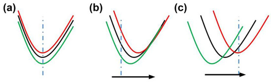 Schematic of the spectrum: (a) unchanged; (b) minor shifts; (c) substantial shifts.