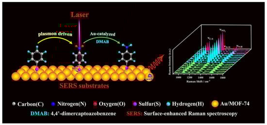 - Sun, H.; Yu, B.; Pan, X.; Zhu, X.; Liu, Z. Recent progress in metal–organic frameworks-based materials toward surface-enhanced Raman spectroscopy. Appl. Spectrosc. Rev. 2022, 57, 513–528. [Google Scholar] [CrossRef]