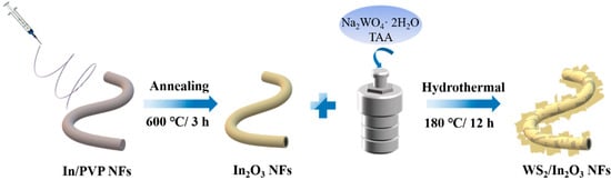 Schematic illustrations of the fabrication of WS2/In2O3 composite nanofibers.