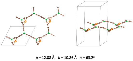 Figure 1. It is a honeycomb structure with the boron atoms at the vertices of the hexagons, linked by butadiyne chains. In the calculations, the BGDY layer was modeled using a repetitive supercell, sketched in