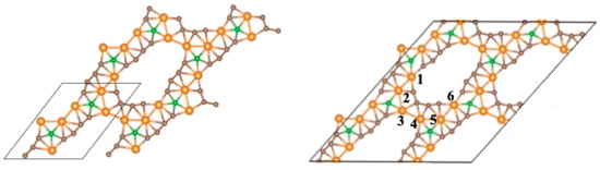 Figure 1), were allowed to vary in order to minimize the total energy of the system. This led to distortions in the structure of the BGDY substrate. To study the electronic properties, the band structure and the density of electronic states (DOSs) have been calculated, and, for this purpose, calculations at fixed geometry were performed, employing 20 × 20 × 1
