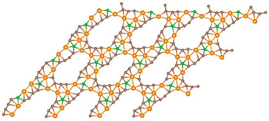 Figure 7. The optimized chain configuration exhibits substantial in-plane distortions, with γ = 53.5°, but there is practically no deviation of the BGDY layer from planarity. The Ni atoms form bonds with B atoms. Also, two Ni atoms of each hexagon form Ni–Ni bonds of length