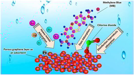 - Shahzadi, I.; Khan, Z.H.; Akram, W.; Khan, W.U.; Ahmad, A.; Yasin, N.A.; Yujie, L. Heavy metal and organic pollutants removal from water using bilayered polydopamine composite of sandwiched graphene Nanosheets: One solution for two obstacles. Sep. Purif. Technol. 2022, 280, 119711. [Google Scholar] [CrossRef]