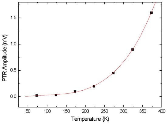 where T is the temperature and are the temperature oscillations induced in the sample by laser. Figure 3 shows PTR signal amplitude as a function of temperature.
