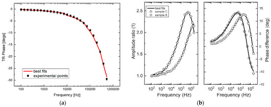 In our case, we tested the accuracy of both methods using a 2 µm sample of AlGaAs superlattice. The following analysis represents the obtained experimental results—amplitude and phase. PTR and TR data were validated for the existing literature and measured using each of these methods. For instance, the TR and PTR results for the AlGaAs sample are presented in Figure 6, with (a) showing the TR phase and (b) the PTR amplitude and phase, respectively.