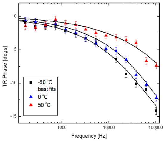The analyzed sample was a 52 nm AlAs/GaAs superlattice of periodicity prepared on a GaAs substrate. The phase of the collected TR signal superlattice collected from the sample for three different temperatures of −50, 0, and 50 °C is presented in Figure 13 [24].