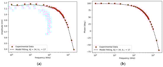 (a) Normalized amplitude (R); (b) phase (deg.) vs. modulation frequency (kHz) [25].