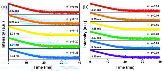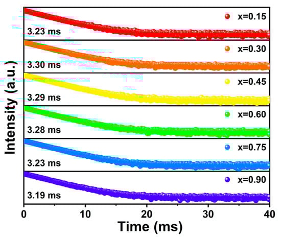- Wei, D.; Yang, X.; Liu, Y.; Kim, J.H.; Park, S.H.; Seo, H.J.; Lee, B.R. Clarifying concentration quenching mechanisms by lattice site-occupation and luminescence kinetics of Eu3+-activated Cs2Mg2Mo3O12. J. Mater. Chem. C 2023, 11, 13548–13560. [Google Scholar] [CrossRef]