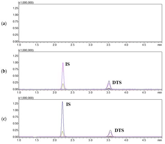 3.5. Establishment of LC-MS/MS Analysis Method for Determination of DTS in Plasma