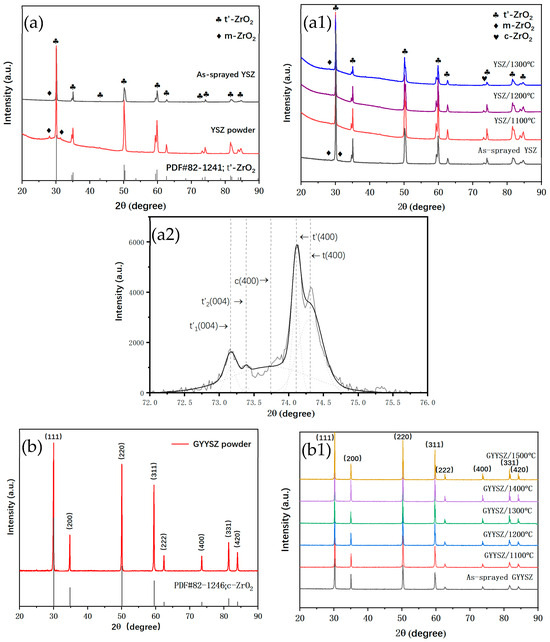 Figure 3(a1) displays the XRD patterns of the YSZ coating following heat treatment at various temperatures. After treatment at 1100 °C, the m-ZrO