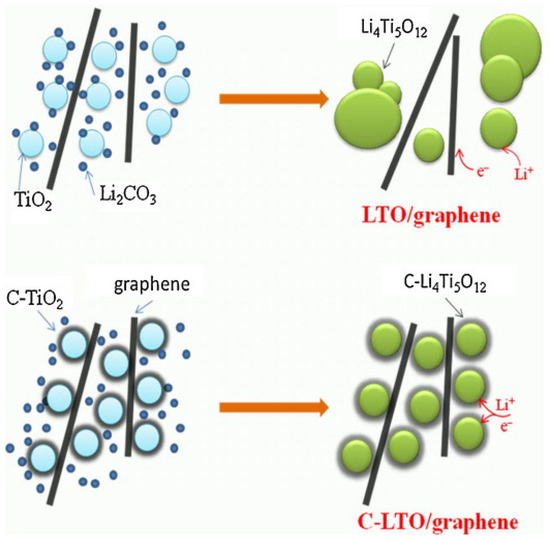 Schematic illustration of the carbon coating effects in LTO/graphene composites [36].