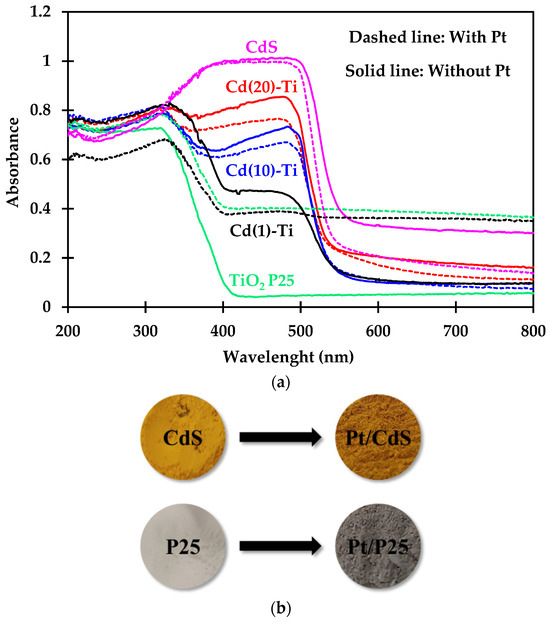 2.3. Synthesis of Pt/CdS/TiO2 Photocatalysts
