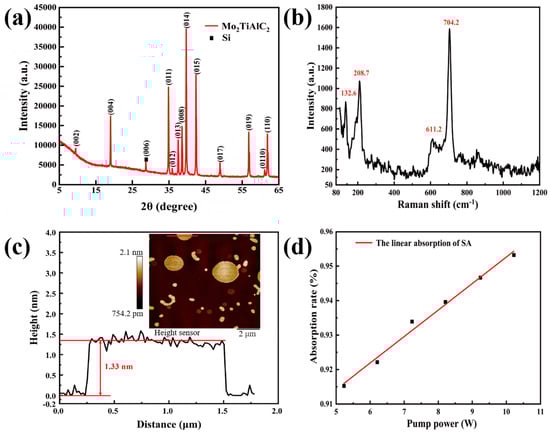 APA StyleWang, C., Chen, T., Meng, Z., Niu, S., Li, Z., & Yang, X. (2024). Mo2TiAlC2 as a Saturable Absorber for a Passively Q-Switched Tm:YAlO3 Laser. Nanomaterials, 14(22), 1823. https://doi.org/10.3390/nano14221823