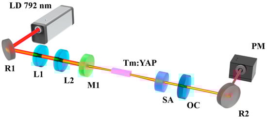 - Zong, T.; Li, L.; Gao, Q.; Liu, B.; Yang, X.; Yang, Y.; Cui, H. Passively Q-switched Tm: YAP laser with a tantalum aluminum carbide saturable absorber. Appl. Opt. 2022, 61, 2432–2437. [Google Scholar] [CrossRef]