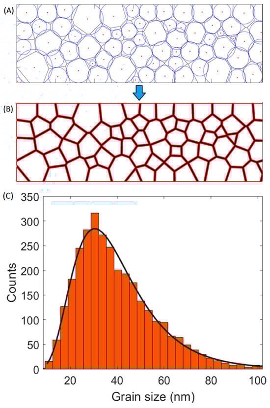 15]. This weighted Voronoi tessellation creates a microstructure that faithfully represents the specified grain size probability distribution. An example of the described steps to create a microstructure is illustrated in