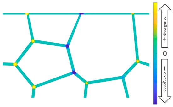 The atomic flux takes place along the fast diffusion paths, being higher when the path aligns more closely with the electron flow direction, in contrast to paths perpendicular to it. Subsequently, the flux divergence is computed, elucidating regions where atoms accumulate or deplete, notably at triple points. An illustrative calculation of flux divergence is presented in