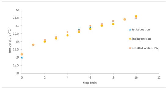 - Temperature recorder and probe for measuring the sample temperature (Chaviun1822 with probe K presenting an accuracy ±2%). In the magnitude range of the magnetic field, the inference is minimal, as demonstrated in the next section [32,33,38].
