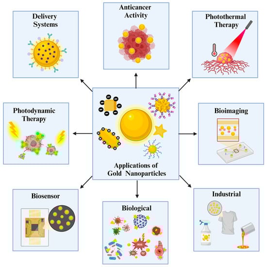 - Elahi, N.; Kamali, M.; Baghersad, M.H. Recent Biomedical Applications of Gold Nanoparticles: A Review. Talanta 2018, 184, 537–556. [Google Scholar] [CrossRef]