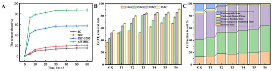 3.4. The nZVI@BC Remediation of Chromium-Contaminated Soil
